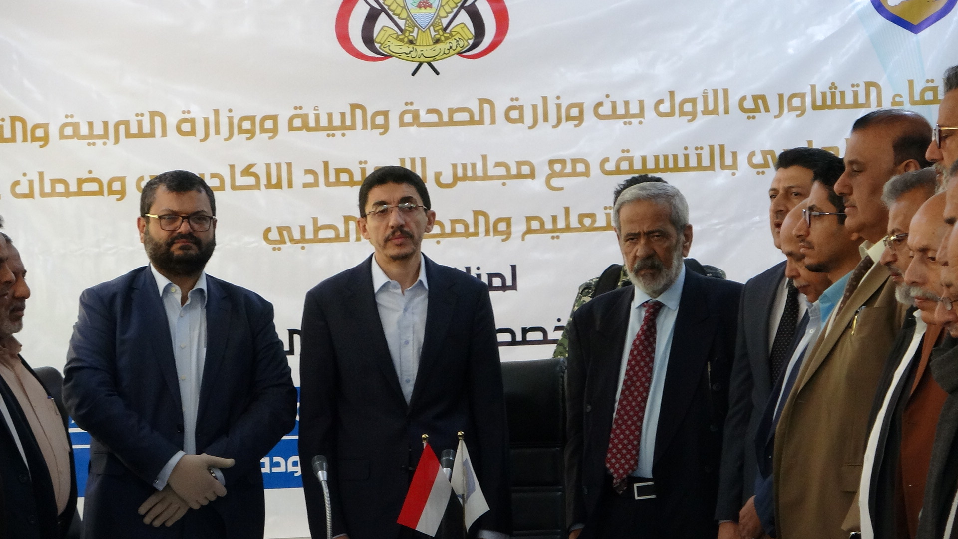 عقد بصنعاء اليوم اللقاء التشاوري الأول بين وزارتي الصحة والبيئة والتربية والتعليم والبحث العلمي بالتنسيق مع مجلس الاعتماد الأكاديمي وجودة التعليم والمجلي الطبي، لمناقشة أوضاع التخصصات الطبية والصحية.