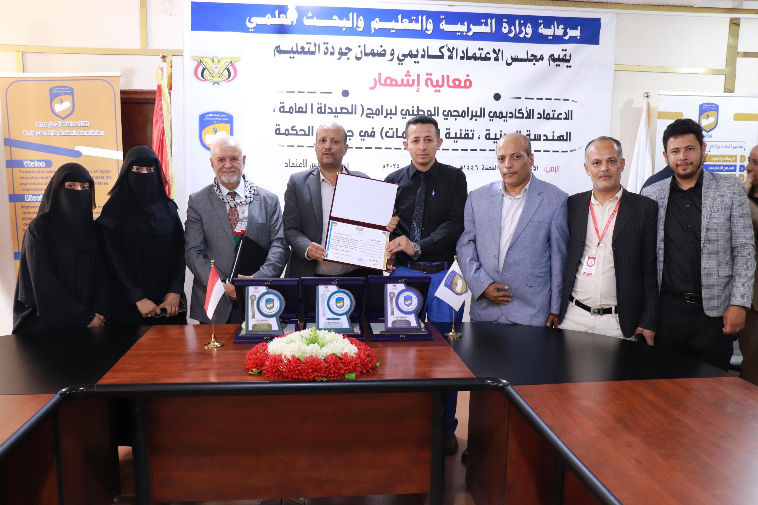 مجلس الاعتماد الأكاديمي يمنح شهادة الاعتماد الوطني لثلاثة برامج بجامعة الحكمة