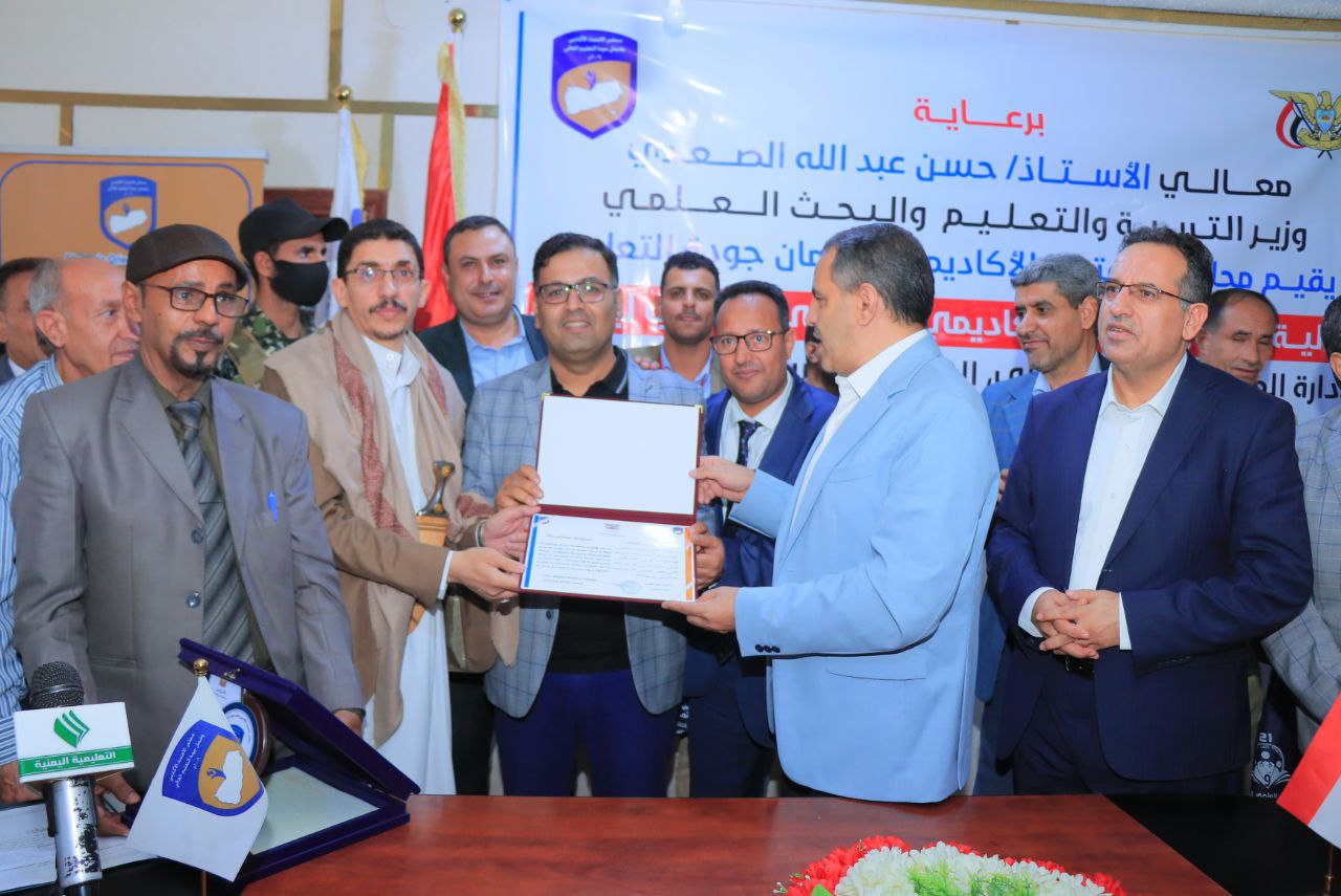 وبارك وزير التربية والتعليم والبحث العلمي حسن الصعدي، لجامعة 21 سبتمبر للعلوم الطبية والتطبيقية حصولها على شهادة الاعتماد الأكاديمي الوطني البرامجي في برامج " الإدارة الطبية، والطب المخبري، والتمريض العالي، والصيدلة السريرية".