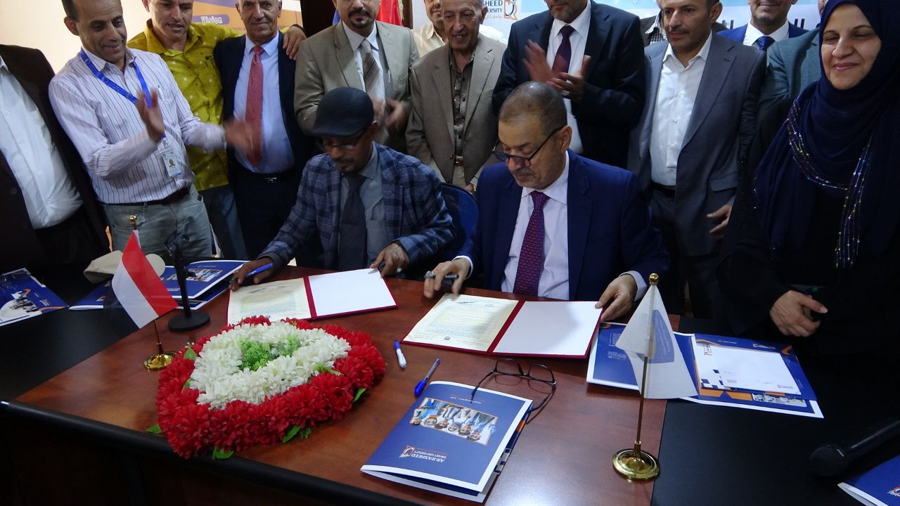 وخلال التسليم، وقع رئيس مجلس الاعتماد الأكاديمي الدكتور أحمد الهبوب، ورئيس الجامعة الدكتور عبداللطيف حيدر، اتفاقية التقدم بطلب كتابي موقع ومعتمد من المسؤول المخول قانوناً بالجامعة إلى مجلس الاعتماد بشأن طلب مساعدة المجلس للجامعة في تقديم الدعم الفني لضمان تنفيذ جودة البرامج المذكورة وتأهيلها لنيل الاعتماد الوطني "البرامجي".